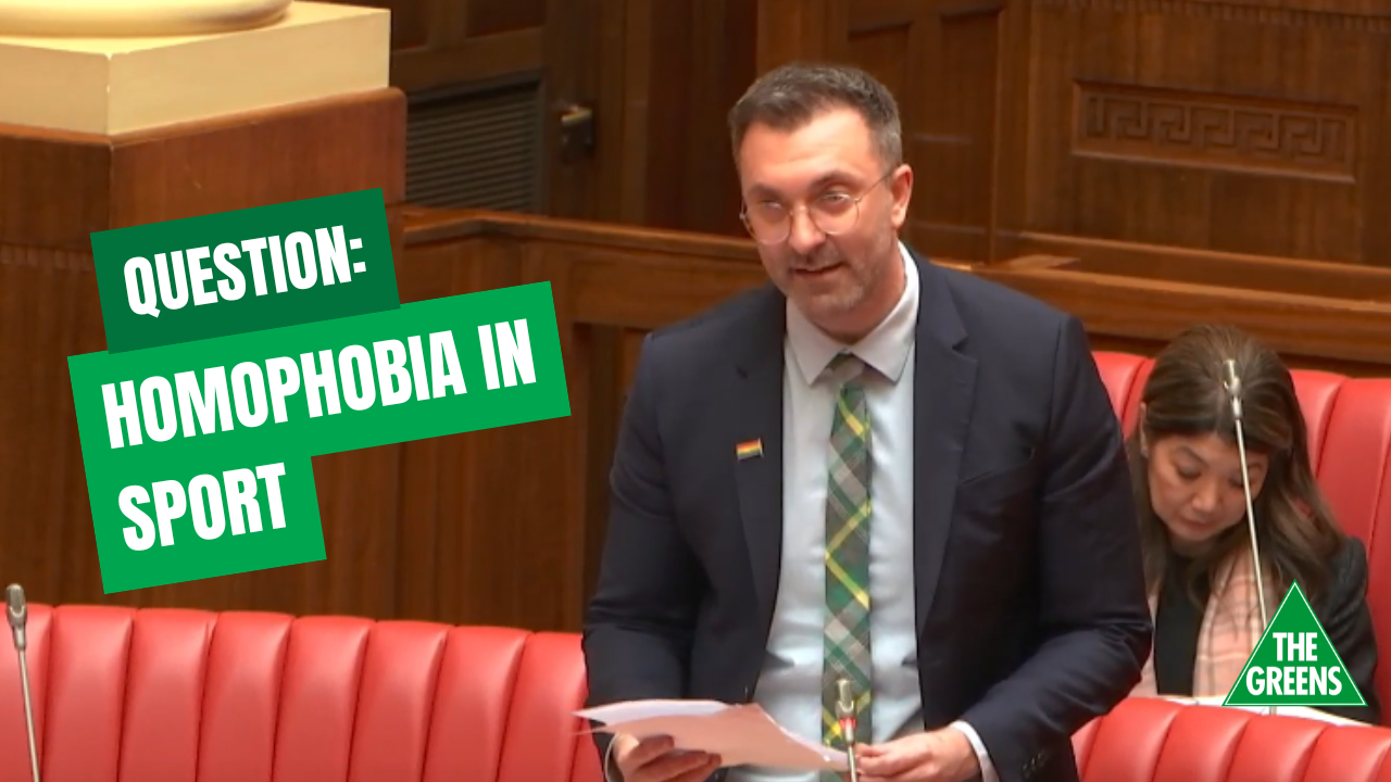 The Hon. E.S. BOURKE (Minister for Emergency Services and Correctional Services, Minister for Autism, Minister for Recreation, Sport and Racing) (14:42): I thank the member for his question and appreciate his comments that were made on radio; I think that was yesterday. I agree that there is no space on or off the field in our community for homophobic comments. As I have said before in this chamber, sport enables an opportunity for people to belong and feel that this is a safe space for them.