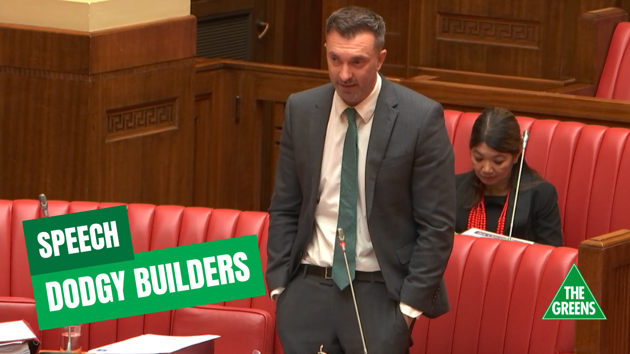 The Greens have also been advocating for the establishment of a public builder, which could step in and complete construction of private builds in circumstances where a builder has gone bust. Under our proposal, the state would acquire an equity stake in the home, which the home owner could pay down over time. I do think it is really unfortunate that we have home owners who have been caught high and dry in circumstances where private builders go bust.