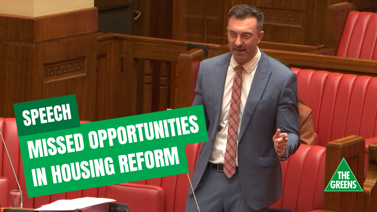 The Hon. R.A. SIMMS (12:08): I rise to speak on the Residential Tenancies Bill. I note that the bill addresses issues in relation to rooming houses. I am supportive of that, but I do feel that this would be a missed opportunity: given we are opening up the Residential Tenancies Act, this is potentially a missed opportunity for the parliament to deal with some of the outstanding issues that we failed to resolve the last time we opened up the Residential Tenancies Bill.